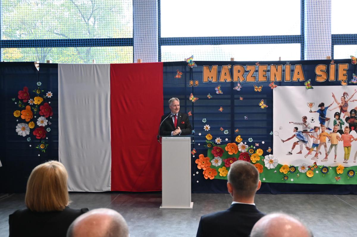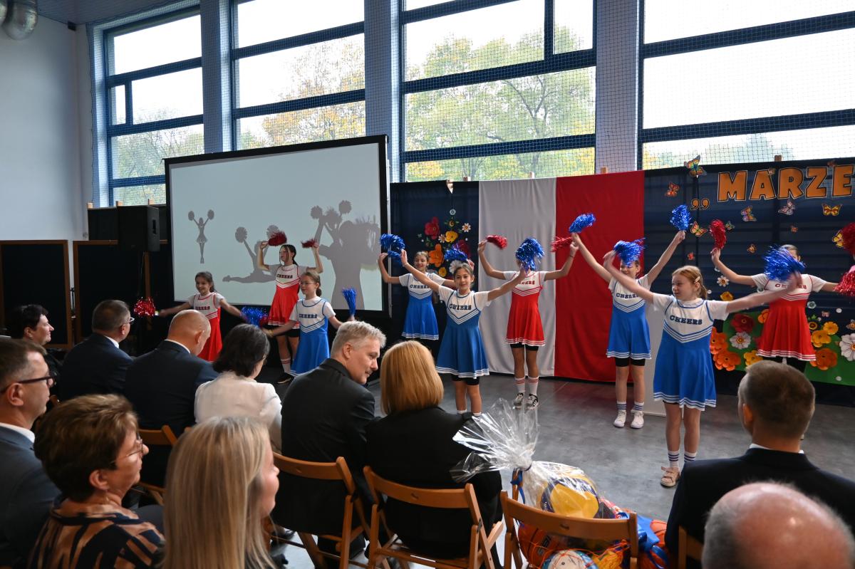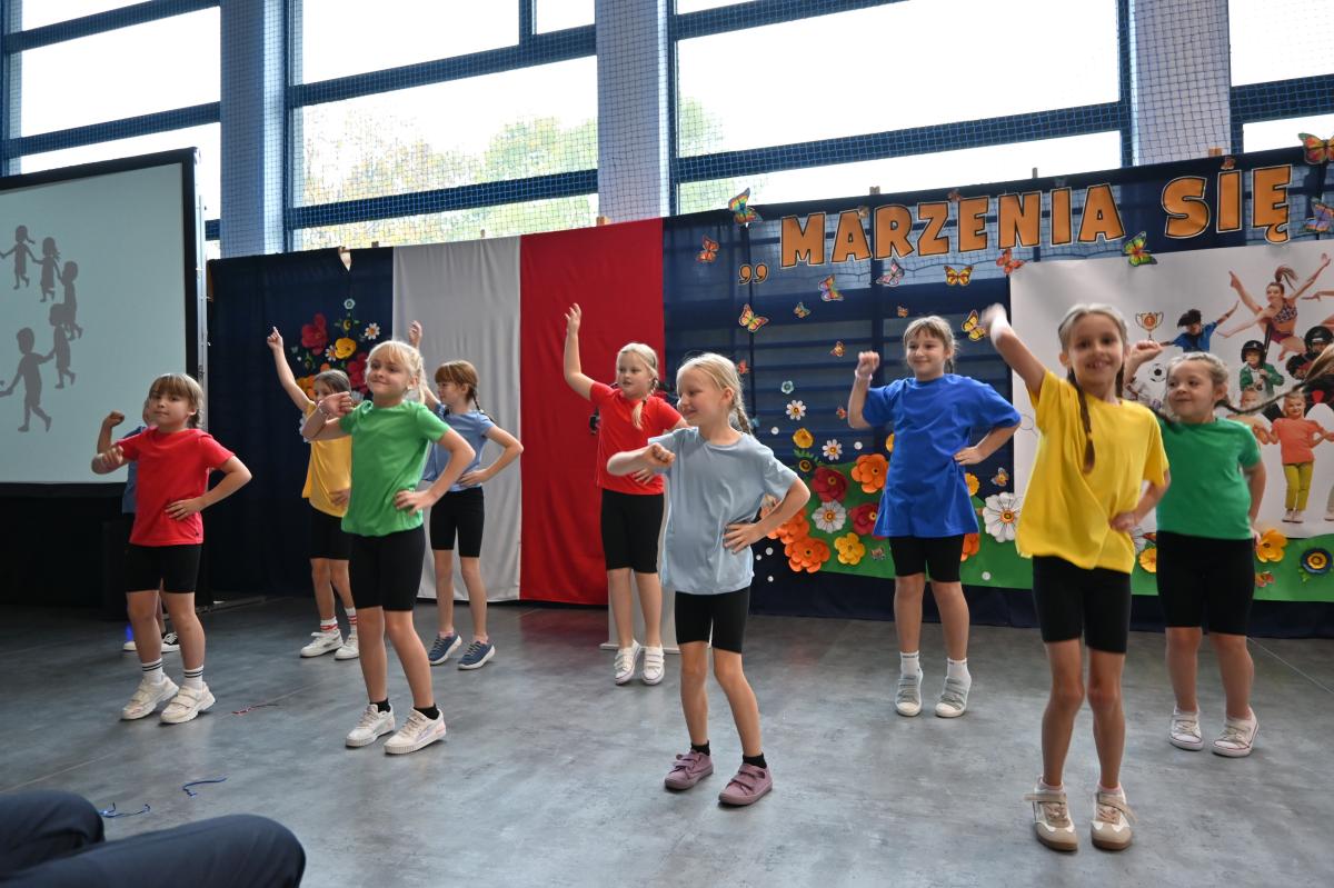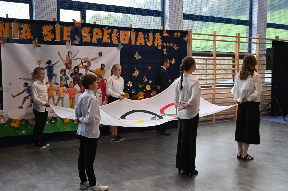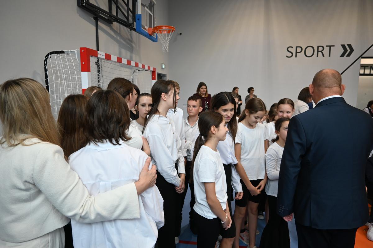 Cała społeczność szkolna czekała na ten moment. Nowa sala gimnastyczna jest oficjalnie otwarta! Czwartek 9 października 2025 roku zgromadził w naszej szkole wielu znakomitych gości. Zaszczycili nas swoją obecnością: pan Krzysztof Klęczar - wojewoda małopolski, pan Artur Pasek - pierwszy Małopolski Wicekurator Oświaty, pani Danuta Kawa - Radna Sejmiku województwa małopolskiego, pan Maksymilian Głowacz - Powiatowy Inspektor Nadzoru Budowlanego, pan Jan Najdek - Wójt Gminy Budzów, pani Janina Pieronkiewicz - sekretarz gminy Budzów, pani Kamila Nitecka przewodnicząca Rady Gminy, pan Maciej Krzyśków – Główny Specjalista w Wydziale Promocji, Kultury, Sportu i Funduszy, ks. Zbigniew Kaleciak - proboszcz parafii Budzów, ks. Piotr Derendal- wikariusz, sołtysi okolicznych wsi, pan Adam Liszka - wieloletni sołtys naszej wsi, radni powiatowi i gminni, zarząd OSP Baczyn oraz przedstawicielki KGW, dyrektorzy szkół podstawowych i przedszkoli samorządowych, pan Artur Świerkosz - wykonawca, a także rodzice i absolwenci. W części oficjalnej uroczystości Pani Dyrektor Teresa Gaura przywitała wszystkich zgromadzonych oraz wygłosiła piękne przemówienie. Ksiądz probosz poświęcił obiekt, a zaproszeni goście przecięli wstęgę. Później głos zabrali zaproszeni goście. Ostatnim punktem części oficjalnej było wprowadzenie flagi olimpijskiej oraz złożenie ślubowania przez przedstawicieli poszczególnych klas. Cześć artystyczną rozpoczęły prowadzące - Natalia i Julia, które sprawdziły się świetnie w roli konferansjerów. Następnie odbyły się prezentacje dyscyplin - akrobatyka, siatkówka, karate, piłka nożna, gimnastyka, poprzeplatane pięknymi rytmicznymi piosenkami. Występ uwieńczyła autorska piosenka, którą wykonali wszyscy uczniowie. Oczywiście był też czas na podziękowania, wpisy do księgi pamiątkowej oraz rozmowy.