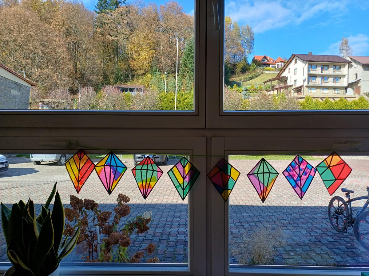 2) Każdy uczeń wykonał witraż- latawiec pt. "Krok po kroku do sukcesu!".