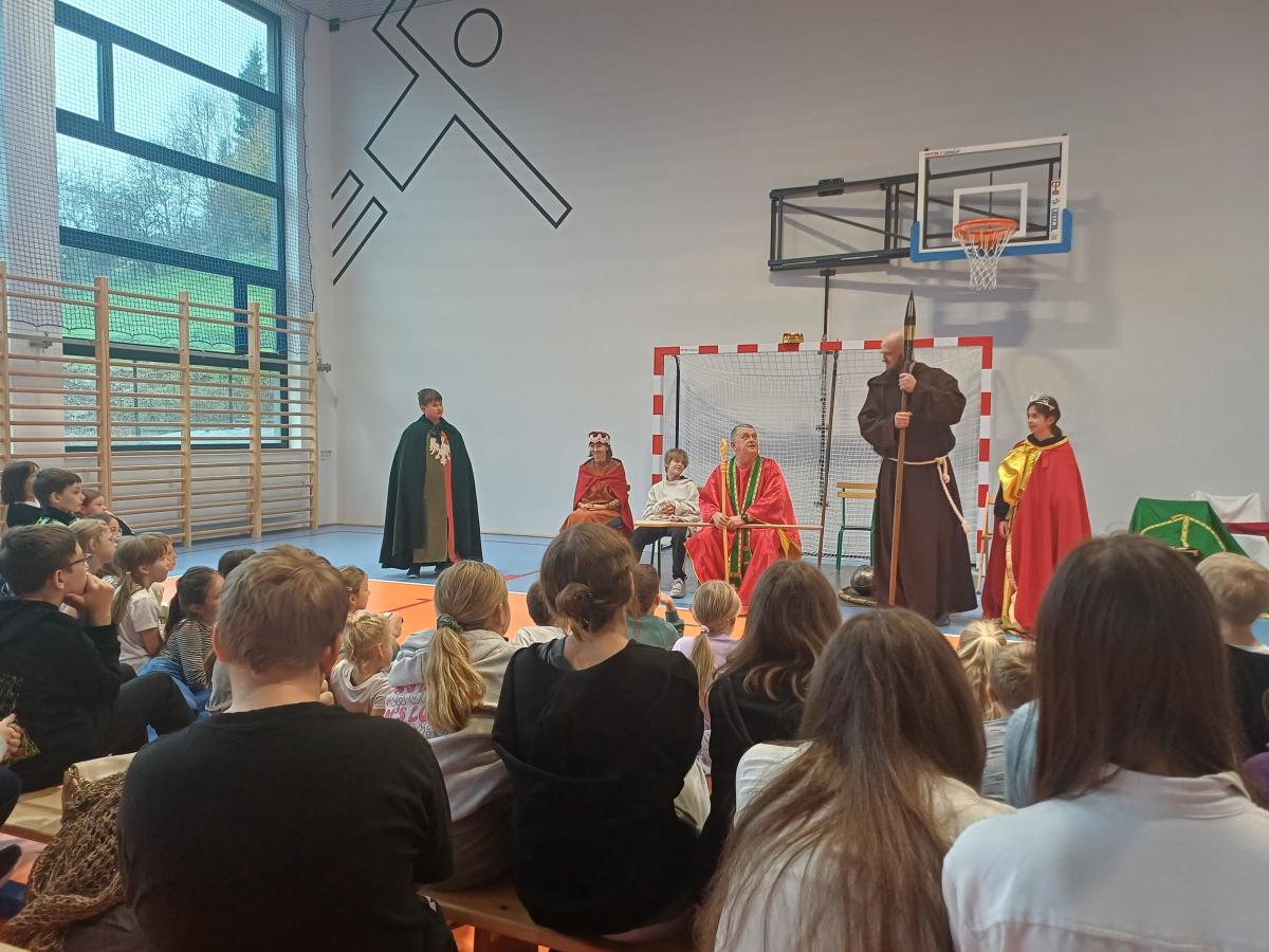 Dnia 24.10.2025r. w naszej szkole odbyła się wyjątkowa lekcja historii – inscenizacja koronacji Bolesława Chrobrego. Było to nie tylko ciekawe doświadczenie edukacyjne, lecz także fascynujące spotkanie z historią w jej najbardziej żywej formie.