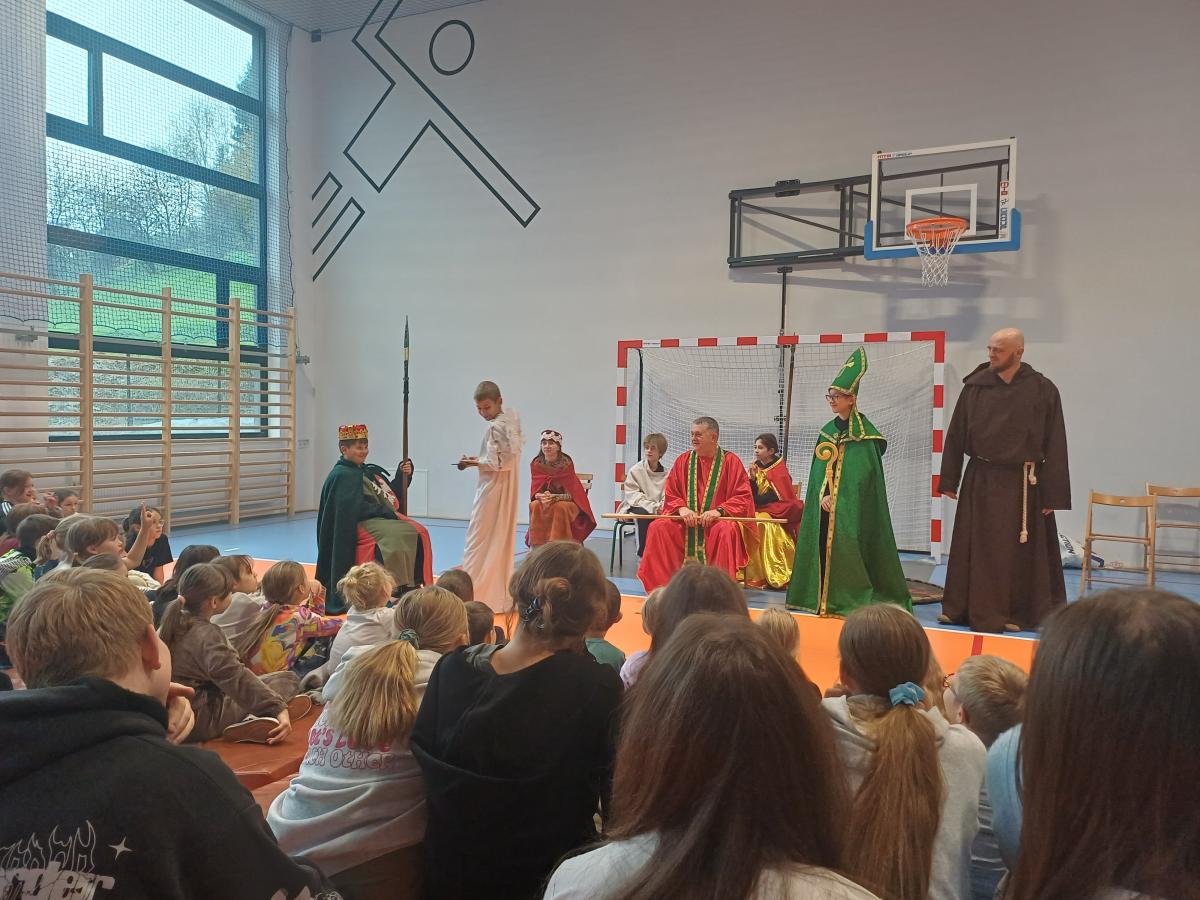 Podczas przedstawienia przypomniano kluczowe fakty związane z koronacją Bolesława Chrobrego w 1025 roku, podkreślając jej znaczenie dla wzmocnienia pozycji Polski na arenie europejskiej. Uroczystość miała charakter nie tylko edukacyjny, lecz także widowiskowy – wzbudziła duże zainteresowanie i entuzjazm wśród uczniów.