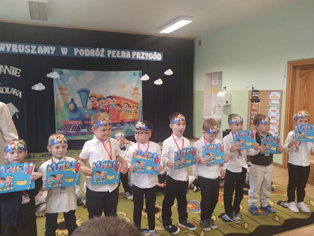 Nasze przedszkolaki zaprezentowały piękny występ artystyczny – recytowały wiersze oraz śpiewały piosenki, pokazując, jak wiele już potrafią. Następnie dzieci złożyły uroczyste ślubowanie, obiecując być dzielnymi, radosnymi i pomocnymi przedszkolakami.