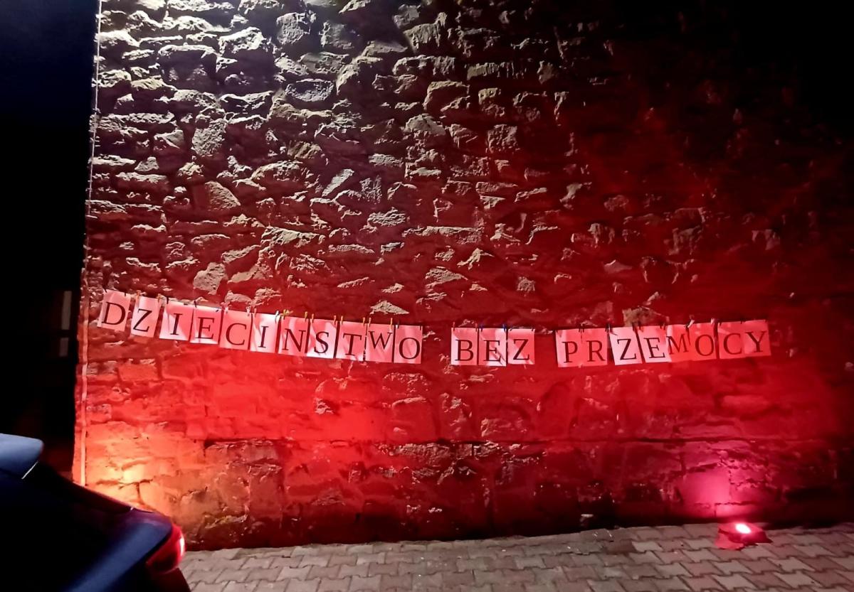 Włączając się w ogólnopolską akcję „Dzieciństwo bez przemocy”, dn. 19.11.2025r. podświetliliśmy nasz budynek na czerwono jako znak sprzeciwu wobec krzywdzenia najmłodszych. To symboliczny gest, który ma przypominać o potrzebie dbania o bezpieczeństwo i godność każdego dziecka. Wierzymy, że wspólne działania mogą realnie wpływać na budowanie świata wolnego od przemocy.