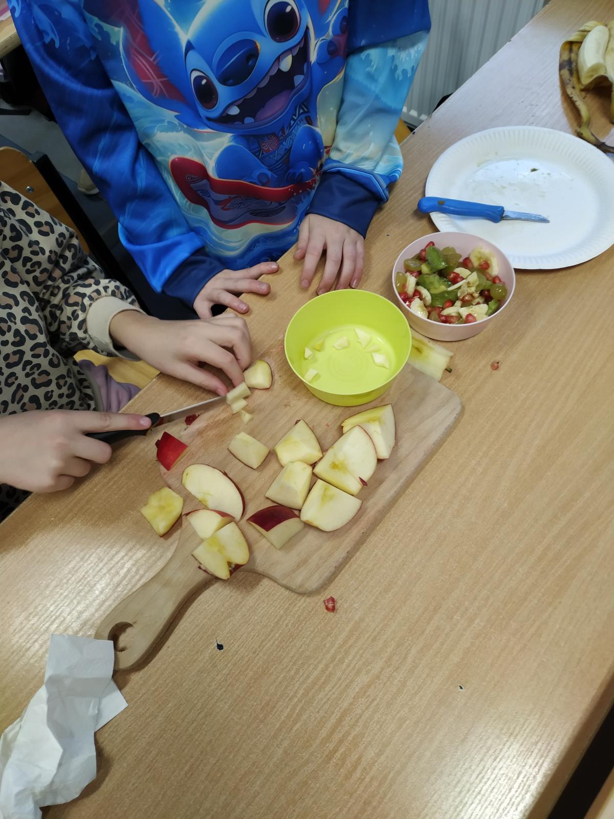 Każdy uczeń wie, jak ważne są dla nas owoce – nie tylko dlatego, że są smaczne, ale przede wszystkim zawierają mnóstwo witamin, które chronią i wzmacniają nasz organizm. Uczniowie na zajęciach edukacji zdrowotnej przygotowali pyszną sałatkę z ulubionych owoców. Przyrządzenie jej dało im wiele satysfakcji, jednocześnie uświadamiając jak ważną rolę odgrywają witaminy we właściwym funkcjonowaniu organizmu.