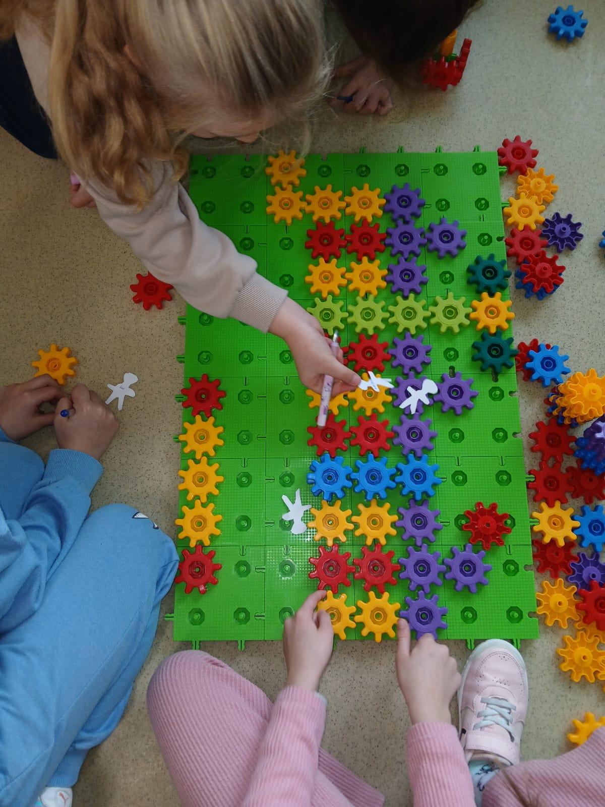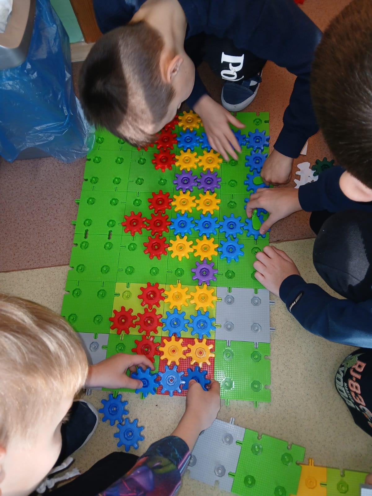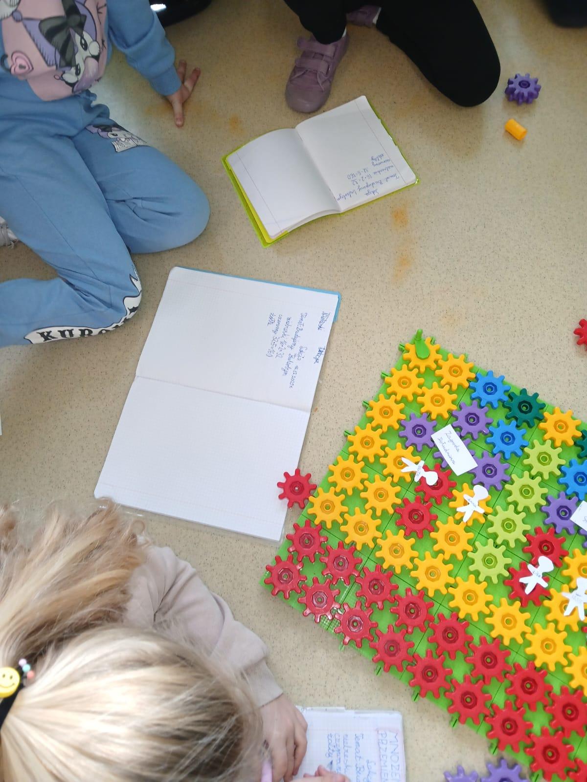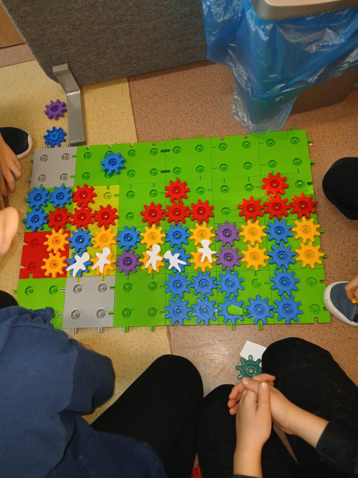Klasa II realizuje w tym roku projekt "Kolorowa matematyka z korbo". Praca z klockami tak bardzo nam się spodobała, że postanowiliśmy zbudować ruchomy obraz przedstawiający zagrody w Bullerbyn. Było to wyzwanie, aby wprowadzić w ruch wszystkie użyte klocki. Jeśli matematyka, to nie mogło zabraknąć obliczeń. Każdy kolor kół zębatych miał inną wartość. Zadaniem uczniów. było obliczenie, ile warta jest ich zagroda. Mimo, że liczby nie należały do najmniejszych uczniowie poradzili sobie doskonale. Polecamy zajęcia z klockami korbo.