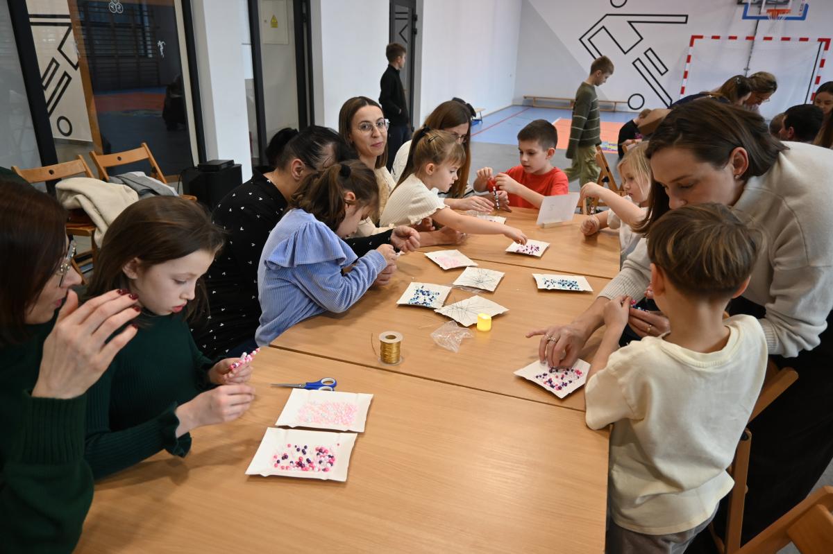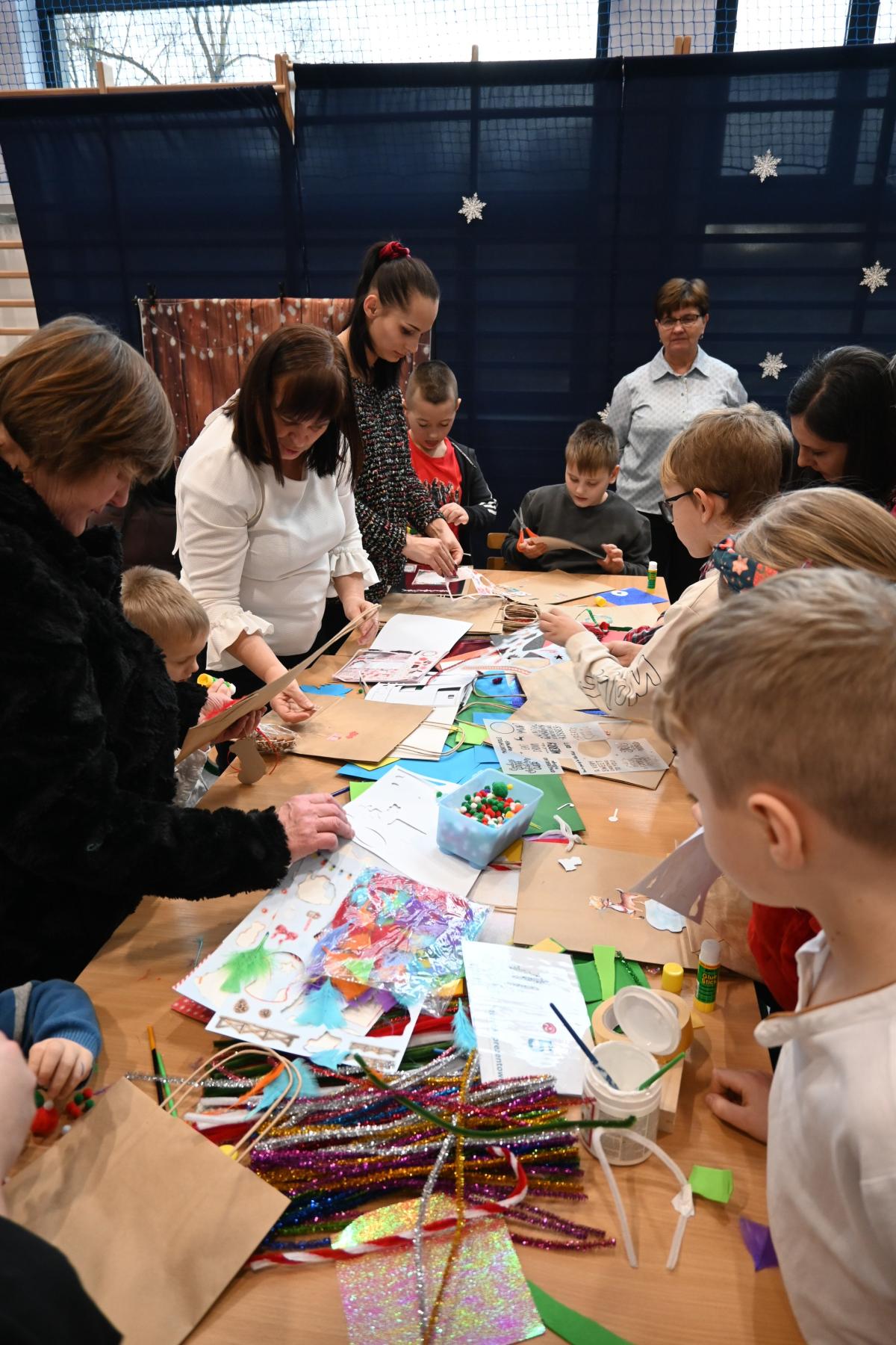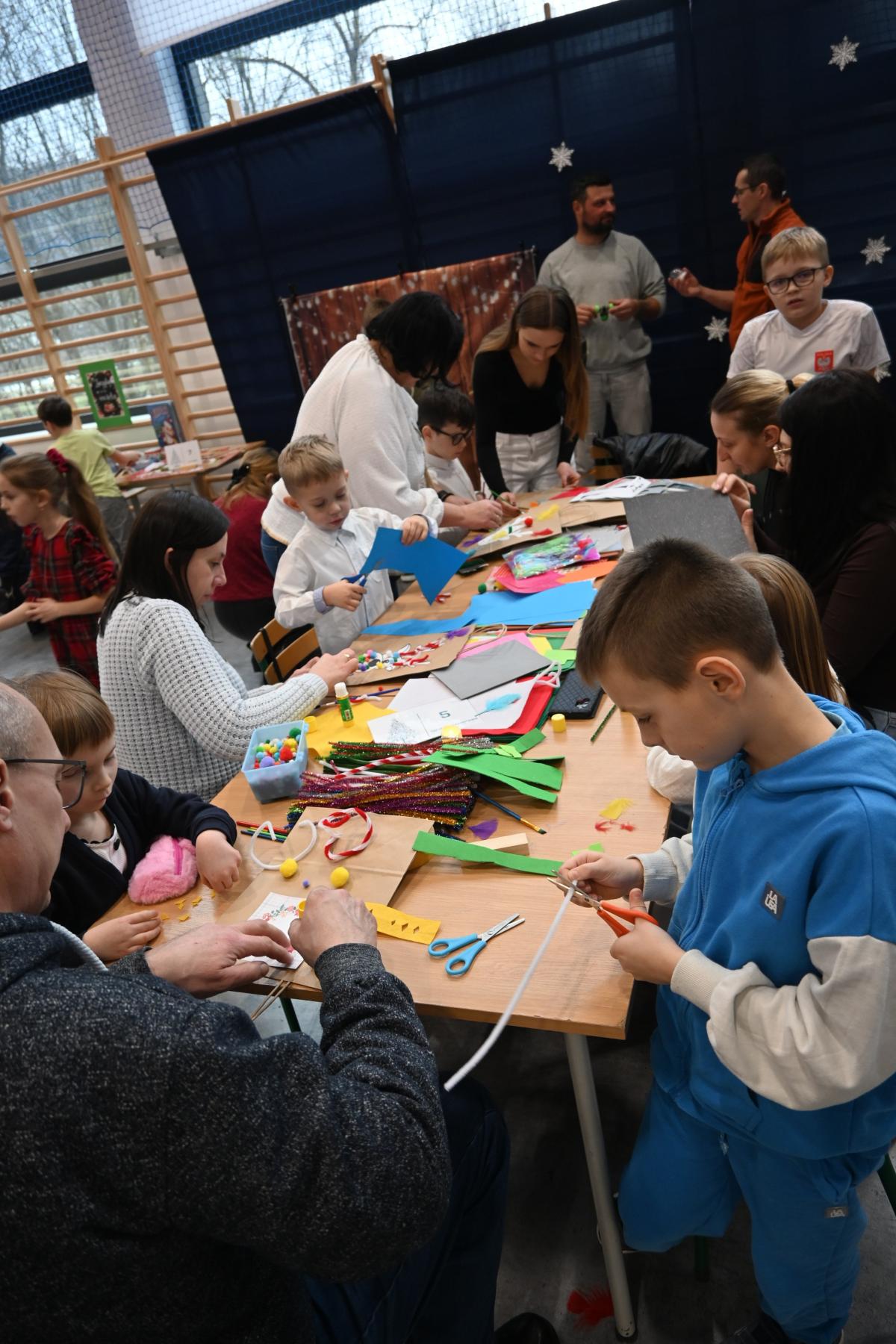 „Czas radości” pod takim hasłem w naszej szkole już po raz drugi odbyły się świąteczne warsztaty. Był to czas przeznaczony na umocnienie rodzinnych więzi. Przedszkolaki oraz uczniowie klas 1-3 razem ze swoimi bliskim przemieszczali się między siedmioma stanowiskami, na których czekały do wykonania kolejne świąteczne ozdoby. Było dużo uśmiechu, radości oraz skupienie, bo niektóre zadania wymagały nie lada cierpliwości. Uczestnicy warsztatów mogli spędzić również czas czytając książki, grając w gry, spróbować sił w programowaniu photonów oraz zrobić sobie pamiątkowe zdjęcie. Najlepszym podsumowaniem świątecznego spotkania, są słowa uczniów z klasy 2, którzy stwierdzili, że bez szkolnych warsztatów nie ma świąt!
