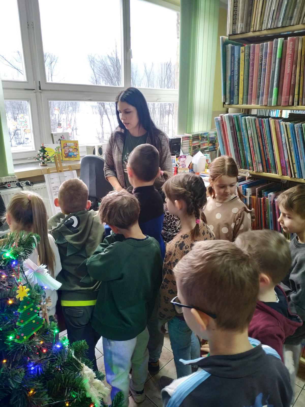 Dnia 28.01. 2026r. uczniowie klasy pierwszej wybrali się do biblioteki, aby zapoznać się z pracą bibliotekarza, regulaminem biblioteki i zasadami wypożyczania książek. Nastąpiło również pasowanie na czytelnika oraz wypożyczenie lektury „Cukierku, ty łobuzie”. Uczniowie otrzymali specjalną wyprawkę czytelniczą i zapewnili, że będą stałymi bywalcami biblioteki.
