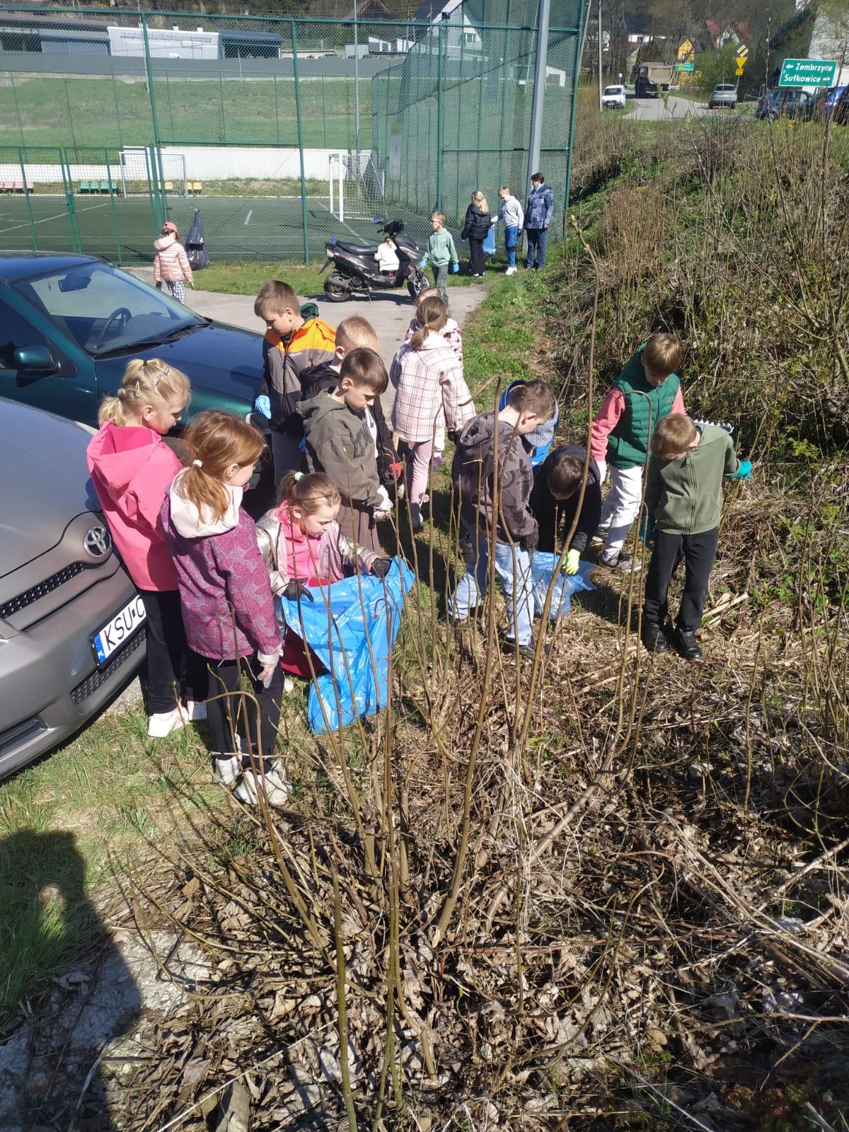 Dnia 22 kwietnia 2026r. obchodziliśmy Światowy Dzień Ziemi. Z racji tego wydarzenia nasza szkoła czynnie włączyła się w obchody tego dnia poprzez Akcję Sprzątania Świata, która miała na celu zmniejszenie odpadów. Uczniowie wraz z nauczycielami na godzinie wychowawczej poszli w teren by posprzątać obszar wokół szkoły, drogi głównej i drogi prowadzącej na Glinnik. Dodatkowo część uczniów wraz z nauczycielem posadzili do donic sadzonki warzyw oraz kwiatów. Na koniec uczniowie wysłuchali prezentacji dotyczącej historii powstania tego dnia, inicjatyw organizowanych corocznie, przyczyn i skutków zanieczyszczeń i sposobów, jakie może podjąć każdy z nas by przyczynić się do poprawy czystości naszej planety. Uczniowie wykazali się wielkim zaangażowaniem.